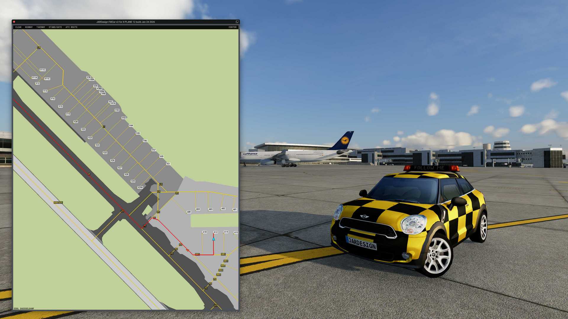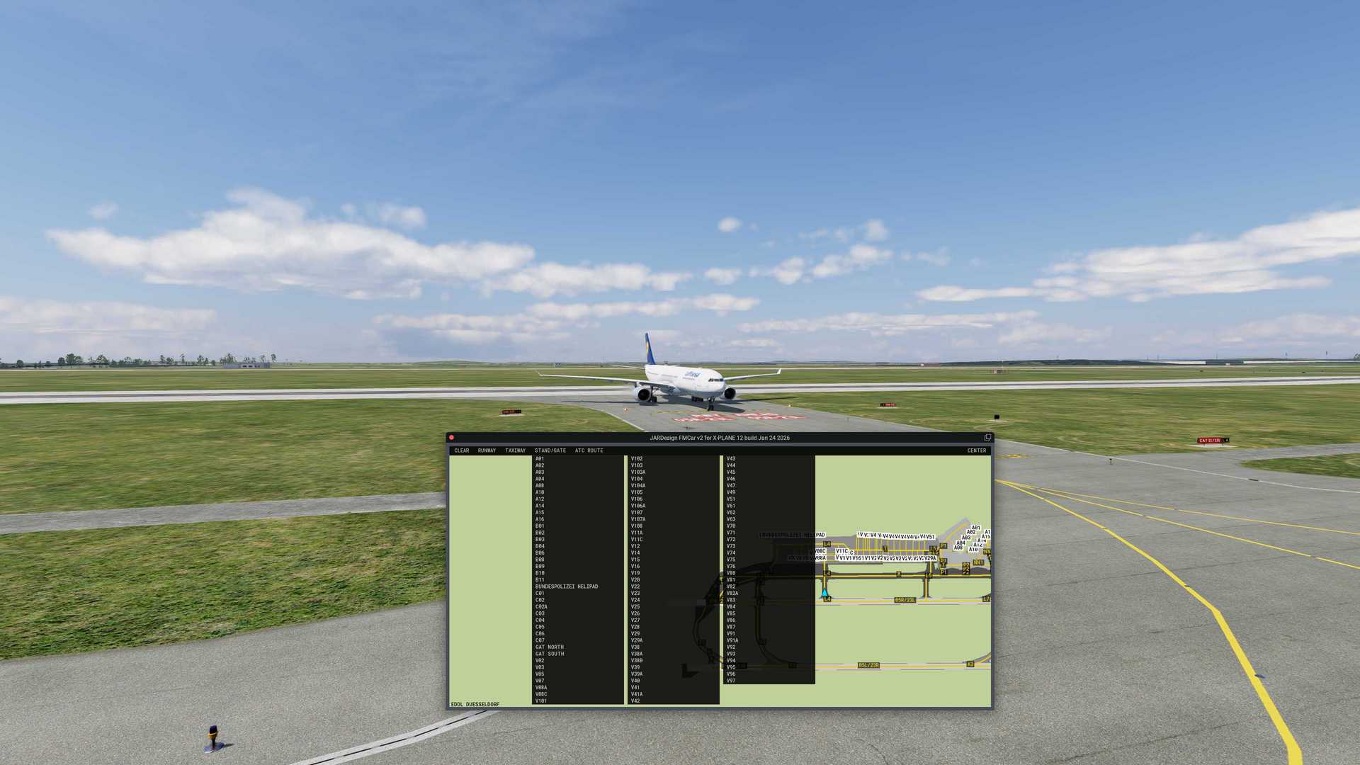 Airport / Scenery Compatibility: Any airport that contains taxiway, runway,gate, and airport surface layout data in its apt.dat file according to XPlane12 apt.dat specifications. The plugin may be unable to read airportdata if the scenery folder is located on an external drive or if any "smartlinks" are used for access.